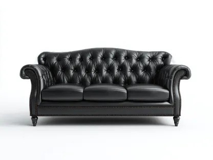 Le revêtement est réalisé en cuir de couleur noire, avec un capitonnage régulier sur le dossier et les accoudoirs. Les finitions soignées et les coutures précises contribuent à une bonne tenue dans le temps et à un aspect visuel homogène.