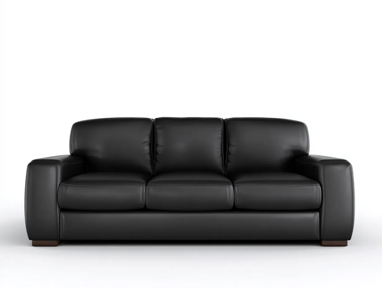 Le revêtement est réalisé en cuir de couleur noire, avec une surface lisse et homogène. Les finitions soignées et les coutures régulières soulignent la structure du canapé et contribuent à sa durabilité dans le cadre d'un usage quotidien.
