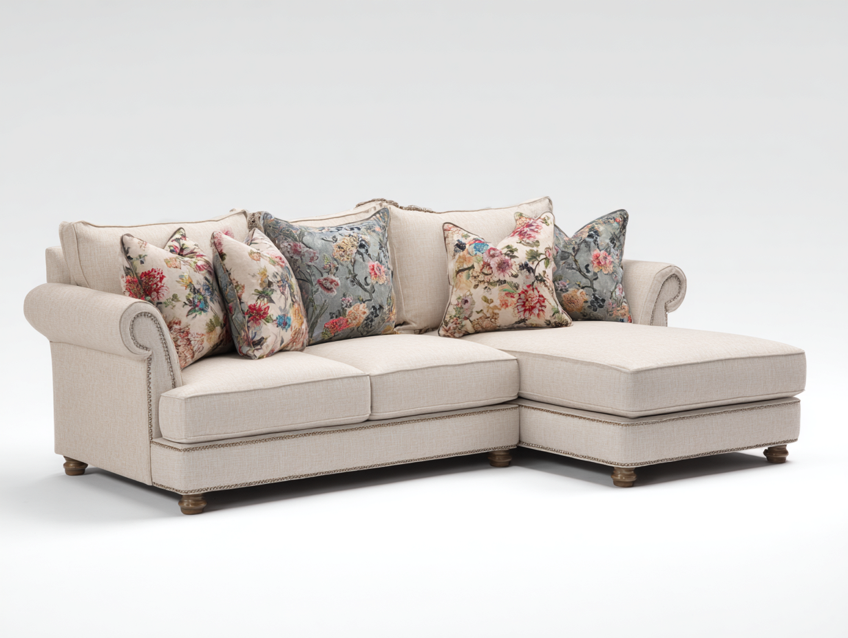 L'assise profonde et les dossiers rembourrés assurent un confort équilibré. Son style classique et ses lignes harmonieuses facilitent l'intégration dans différents aménagements de salon.