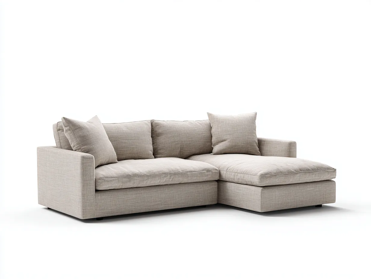 Ce canapé d'angle en tissu est conçu pour aménager un salon avec sobriété et confort. Son design épuré et ses lignes équilibrées s'intègrent facilement dans un intérieur moderne tout en offrant un espace d'assise généreux pour la détente quotidienne.